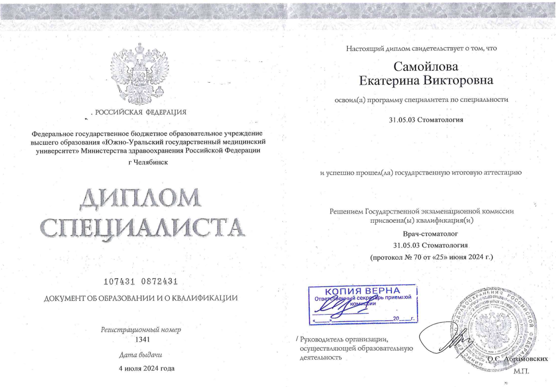 Самойлова Екатерина Викторовна — детский стоматолог-терапевт, специализирующаяся на бережном и качественном лечении молочных зубов. Она использует современные методы диагностики и профилактики, чтобы обеспечить здоровье детских зубов и предотвратить развитие кариеса. Екатерина Викторовна находит индивидуальный подход к каждому ребенку, создавая комфортную и доверительную атмосферу во время приема.